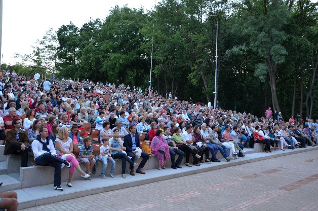 Este nyolc órára az Érsekkert impozáns szabadtéri színpadához várták az érdeklődőket, melynek lelátója csordultig megtelt mire Fekete Antal, az est házigazdája felkérte Török Ferencet, Kalocsa polgármesterét, hogy nyissa meg a XX. Duna Menti Folklórfesztivált.
