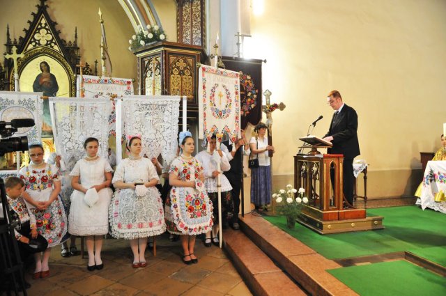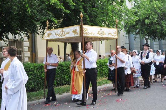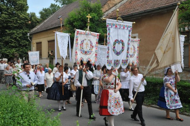 Az ünnepi alkalmakra – régi hagyomány szerint – sokan most is népviseletben érkeztek Kalocsáról és a környező falvakból is, utóbbiak elhozva szűkebb pátriájuk lobogóját is.
