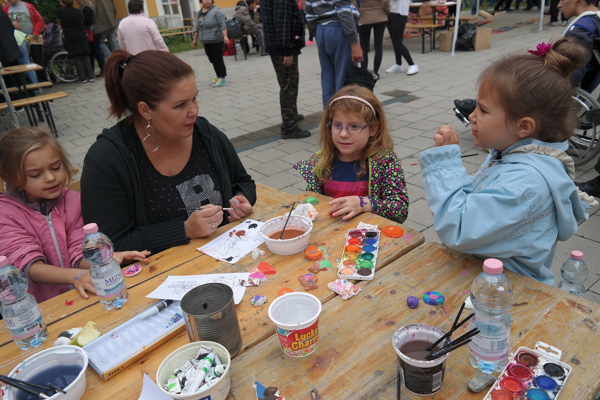 A résztvevő iskolások segítő kutyával is ismerkedhettek, kipróbálhatták a manőverezést kerekesszékkel, ismerkedhettek a siketnémák jelelésével is.