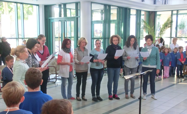Nem csak a gyerekek fakadtak dalra, a tanárok alkalmi kórusa is megörvendeztette a gyerekeket énekével. Az iskola tanárai és diákjai közül volt, aki hangszerét is elhozta, hogy rögtönzött zenei megmozdulásukkal méltó indítását adják a zene nemzetközi ünnepének.