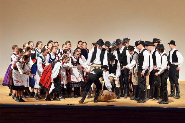 Őket követően a Kalocsai Hagyományőrző Néptánc Együttes mutatta be a tavaly elhunyt Bencze Károlyné nevéhez fűződő Rozmaring tánc (a jegyespár esküvő előtti utolsó mulatsága – a szerk.) című koreográfiáját. A 46 főt, köztük a 14 évestől a 76 éves táncosokig soraiban tudó együttes művészeti vezetője Cselik Mária.