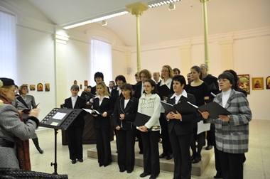 A kiállítás szépségét lelket is gyönyörködtetően emelte meg a Kalocsa Kamarakórus Villányi Eszter vezetésével, akik nem kevesebb meglepetéssel szolgáltak, mint egyebek között korhű régi századok énekeinek dallamvilágával hoztak közel bennünket a képi spirituális világhoz.