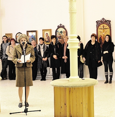 A megnyitóbeszéd után a debreceni egyetem tanszékvezető egyetemi tanára dr. Nagy Márta tartott a tárlatvezetésen túl érdekfeszítő és kimerítő előadást az évszázados ikonfestészet kialakulásáról, a sajátos technika egyedi mivoltáról, és annak hatásáról a keleti egyházak életében. A nagyszámú érdeklődő betekintést nyert az ortodox keleti egyházak és görög katolikus vallásúak ikonokhoz kialakult viszonyáról, majd a bizánci mesterek immáron évszázados hagyományt megvalósító szentképfestészetének lényegéről, annak teológiai jelentőségéről. Az igen kiváló és sokoldalúan megjelenítő ikonok világába bepillantást engedő dr. Nagy Márta gondolatokban végigvezetett bennünket nézőknet a képkészítés módján, annak bonyolult és előírt módozatain, kötöttségén, azon, hogy magát az Isten képmását miként jelenítették meg az arra hívatott mesterek.