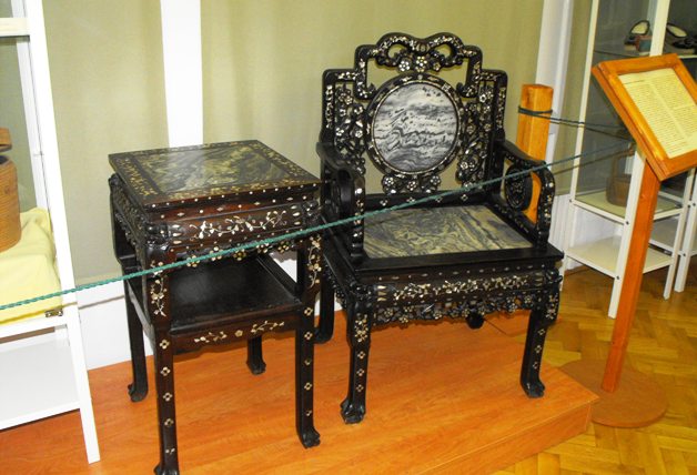 Többek között látható a kiállításban egy jade berakású, gyöngyház díszítésű teázó karosszék és állvány, és még számtalan használati tárgy, ami mind-mind azokat a kínai mindennapokat próbálja egy kicsit közelebb hozni a látogatókhoz, ami a misszionáriusokat fogadhatta.”