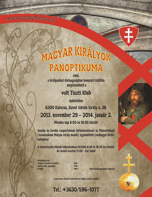 Január 2-ig látogatható a volt Tiszti Klub épületében a Magyar Királyok Panoptikuma című, királyainkat életnagyságban bemutató kiállítás.