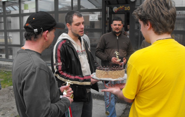 Sorra születtek a szebbnél szebb gólok, a távoli bombákban főként a Lefoglaló Gátfutók jeleskedett. A hazai Kalocsapat sokszor technikás megoldásokkal szórakoztatta a közönséget, míg az előőrs nagy részét alkotó Professionale csapatán nem a vágyott kipihentség, sokkal inkább az esti "városnézés" látszott meg. Az eredmények változatosak voltak, néha fájóan sima vereségek születtek (11:0, 11:1), néha igazi szoros csaták zajlottak (2:1, 3:3) és igazi parázs rangadóknak se voltunk híján (GDM - Sásd 2:1, Kartal - GDM 0:0). A végére több csapaton is kezdett úrrá lenni a fáradtság, a 25 perces mérkőzések sokat kivettek a kevésbé sportosabb életet élőkből. De legalább a random nem szólt közbe! A végeredmény igen szorosra sikerült, mindössze a gólarány döntött Kartal javára a GDM-el szemben! Harmadik helyre a Sásd futott be, míg mögöttük a 3 kis csapat közül igazi bravúrt elérő (Sásddal 3:3) Lefoglaló Gátfutók végzett. A tabellát a Kalocsapat és a Professionale zárta. Volt, aki nem várta ki a meccsek végét és már időközben közelebbi kapcsolatba került az elkészült pörkölttel és savanyú ubival, az ő mozgások ezek után kissé darabos lett, de a lendület megmaradt! Legalábbis a földre huppanásig mindenképp. A türelmesebbek a végén laktak jól, majd megvárták az eredmény hirdetést, és mindenki fogadta a másik gratulációját és hallgatta a fogadkozást: legközelebb mi nyerünk!