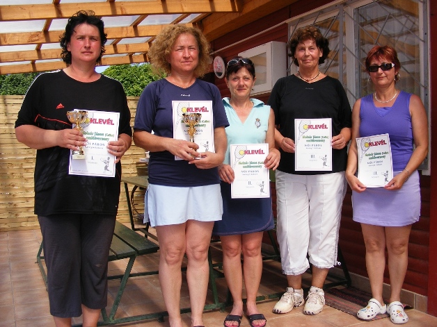 A női párosok végeredménye: 1. Sándor H. – Sándor B.; 2. Karkusné Gyöngyi – Balatoniné Vali; 3. Karin Pisall – Mihók Icu.