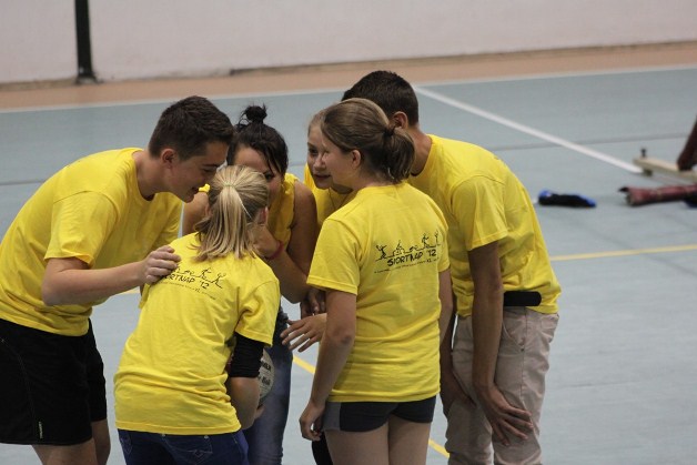 A pódiumról egyből a sportcsarnok arénájába igyekeztek sportolóink, ahol Bánhidi Petra és Stumpf Kata is erősítette az önkormányzat röplabdacsapatát. A városvezetők ugyanis ebben az évben is felvették a kesztyűt – nem csak átvitt értelemben –, és elfogadták a diákönkormányzat csapatának kihívását. A mérkőzés izgalmas labdameneteket és közel sem sima, 3:1 arányú diák győzelmet hozott.