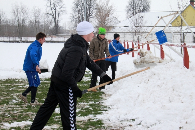 A probléma megoldása kihívást és egyben új célt jelentett a srácoknak, akik a zord idő ellenére az elnökség tagjai, szurkolóik és a kalocsai gyermekotthon segítségével szerda délután elhordták az edzőpályáról a havat.