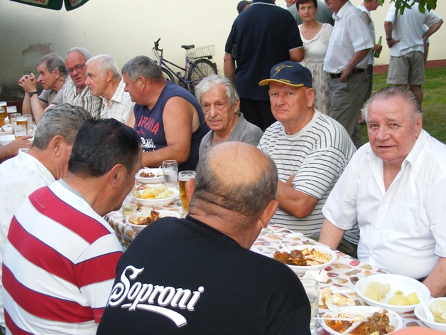 Természetesen a hagyományoknak megfelelően a két félidőt követte a harmadik is, de az már fehérasztal mellett, ahol az egykori játszótársak mennyei birkapörkölt és mellé való jó borok fogyasztása közben adomázhattak a régi idők focijáról.