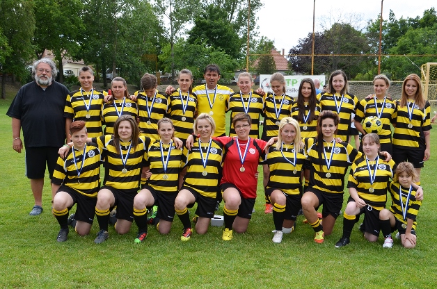 Az idei juniális egyik csúcspontja volt a megyei női bajnokságban ezüstérmes felnőtt csapat (képünkön) éremátadója, ahol városunk alpolgármestere dr. Filvig Géza és a klubelnök Faragó László adták át a nemes veretű medáliákat az ünnepelteknek.