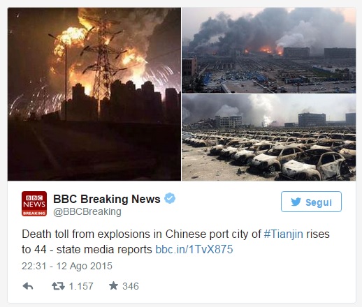 2015. augusztus 13.,csütörtök 11:14 |A kelet-kínai kikötővárosban, Tiencsinben szerdán éjjel robbant fel egy raktár. A Pekingtől nem messze lévő településen hatalmas tűzgolyó töltötte be az eget, a robbanás ereje pedig kilométerekkel arrébb is érezhető volt. A jelenlegi információk szerint a robbanásnak és azt követő tűzvésznek 44 halálos áldozata van, köztük 12 tűzoltó. A sebesültek száma több mint 500.