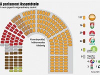 A Nemzeti Választási Iroda vasárnapra virradó éjjel közölt adatai szerint a Fidesz-KDNP-nek 133, az MSZP-Együtt-DK-PM-MLP-nek 38, a Jobbiknak 23, az LMP-nek pedig 5 mandátuma lesz az új parlamentben.