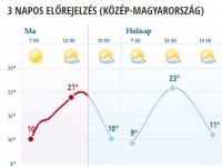 Kedden a többórás napsütéses időszakokat záporok, zivatarok szakíthatják meg. Hétfőn előbb a Dunántúlon, éjszaka a Dél-Alföldön is megnövekszik a felhőzet, és főként az említett tájakon elszórtan záporok, zivatarok alakulnak ki.
