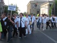 A legtöbb sajtóorgánum a résztvevők számát 10 ezer főre becsülte a fővárosban május 12-én, kedden megtartott egészségügyi dolgozók demonstrációján. Kalocsáról mintegy 60 fő vett részt az előre meghirdetett békés felvonuláson, amely a Hősök teréről indult és az Egészségügyi Államtitkárság Arany János utcai székházánál ért véget.