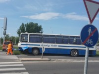 Busszal ütközött egy autó vasárnap kora délután Kalocsa belterületén, az 51-es számú főút bevásárlóközponthoz vezető körforgalmánál. Az ütközés következtében a személyautó sofőrje beszorult járművébe.